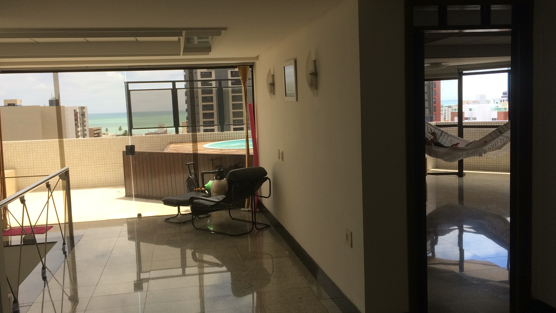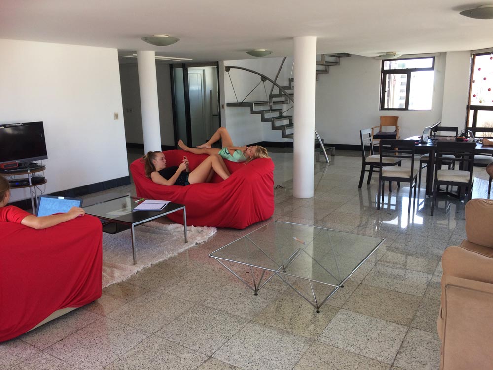 Les immeubles situés au bord de la mer dans les quartiers de Cabo Branco, Tambau et Manaira (où nous sommes) sont plus anciens et les condominio n’ont pas d’espace de loisir très développé. Le nouveau quartier de Altiplano, avec très belles vues sur la mer mais pas d’accès directe car en hauteur offre des condominio avec espace de loisir incroyables.