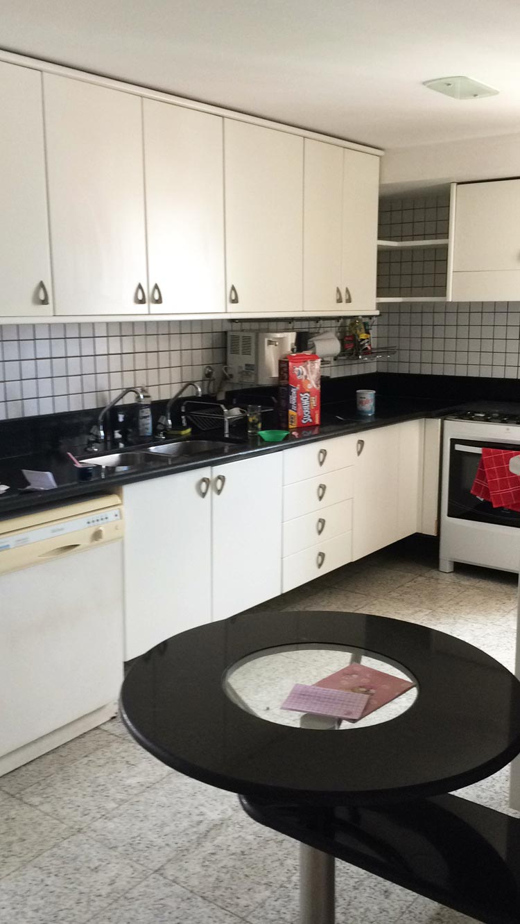 L’appartement comporte 4 chambres avec salle-de-bain chacune, une petite chambre de bonne avec salle-de-bain (ici, ceux qui font partie de la classe moyenne supérieure et plus ont tous des employés de maison qui vivent à demeure… la propriétaire de mon appartement en a 4 !). Un salon au 11ème qui fait salle-à-manger et entrée. Un petit salon au 12ème. Une cuisine avec, chose très rare, un lave-vaisselle. 3 terrasses au 12ème qui permettent de voir la ville à 360°. Ici, il y a les lits, les appareils électroménagers de base – cuisinière, lave-linge, micro-onde, réfrigérateur – mais il faut meubler les près de 300m2. Le loyer n’est pas donné. Les meubles sont plutôt chers… on achètera de l’occasion à l’occasion !