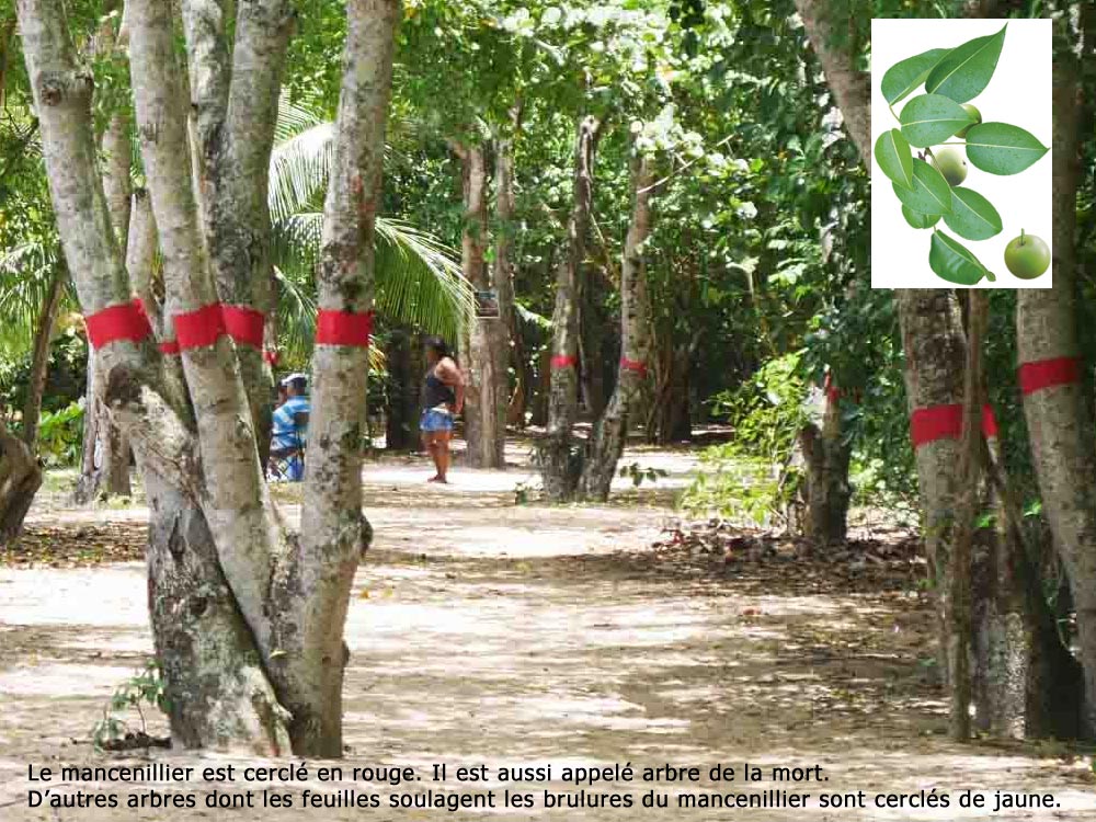 L’île abrite l’arbre le plus dangereux du monde : le mancenillier, également appelé arbre de la mort. Son nom vient de Manzanilla (petite pomme en espagnol). Il pousse dans les régions équatoriales d’Amérique, aux abords des plages, et ressemble à un arbre tout à fait inoffensif avec  ses petits fruits qui se confondent avec des pommes.
