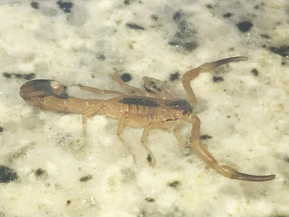 On vient de rentrer de notre soirée bowling, il fait chaud, une petite douche avant de se coucher s’impose. Quand soudain j’entends hurler dans une des salle-de-bain du 12ème. Les filles m’appellent : il y a un scorpion sous le tapis de bain !