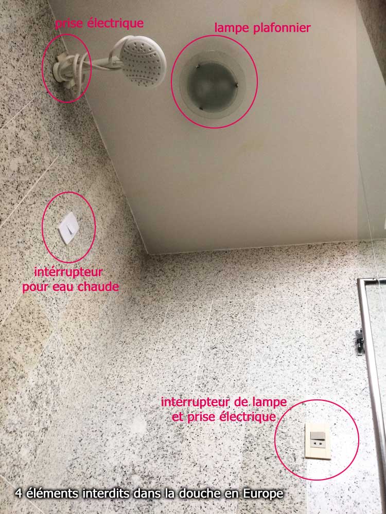 Ma méthode est de ne me doucher qu’à l’eau froide (elle a quasiment la même température que l’eau chaude) et de ne pas utiliser quoi que ce soit d’électrique dans la douche. Pour mes filles, j’ai trouvé des tapis en caoutchouc, pas très beaux et moyennement sécurisés, mais mieux que rien, car je ne suis pas certaine qu’elles suivent mes consignes sans eau chaude.